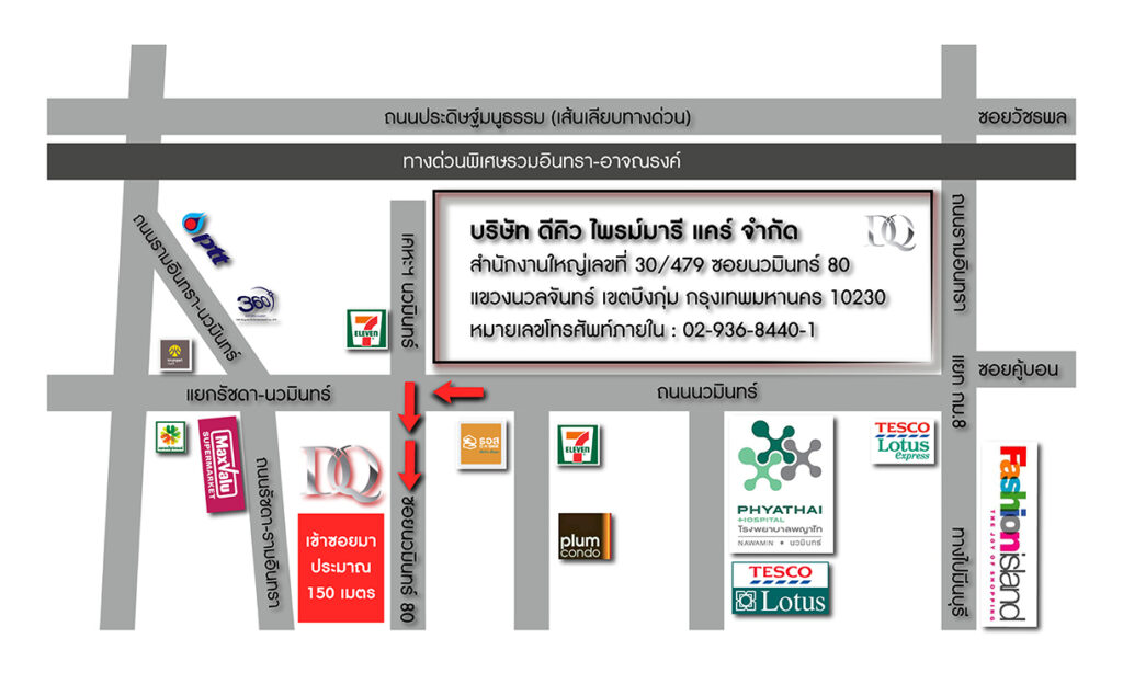 Uncategorized ติดต่อเรา บริษัท ดีคิว ไพรม์มารี แคร์ จำกัด( DQ Primary Care Co., Ltd. )ที่ตั้ง : 30/479 ซ.นวมินทร์ 80 นวลจันทร์ บึงกุ่มจังหวัด : กรุงเทพมหานครรหัสไปรษณีย์ : 10230ประเทศ : ไทยโทรศัพท์ : 02-065-6875แฟกซ์ : 02-936-8442โทรศัพท์มือถือ : 087-482-3841 , 088-616-4624 , 096-829-3235 , 066-162-9424อีเมล : su_dq168@hotmail.comแผนที่ : https://goo.gl/maps/TjKTNjafTAJzQMiW6