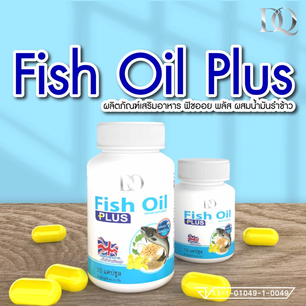 DQ Fish Oil Plus ผลิตภัณฑ์เสริมอาหารน้ำมันปลา ผสมซอยเลซิติน (Soy Lecithin) น้ำมันรำข้าว น้ำมันอีฟนิ่งพริมโรส สารสกัดจากใบแปะก๊วย และวิตามินอี ช่วยบำรุงร่างกาย บำรุงสมอง บำรุงผิว บำรุงผม บำรุงเล็บ เพิ่มประสิทธิภาพการทำงานของสายตา ลดไขมันไตรกลีเซอร์ไรด์ในกระแสเลือด ลดอาการปวดประจำเดือน ลดอาการวัยทองในสตรี ลดปวดข้อเสื่อม ลดปวดข้อรูมาตอยด์